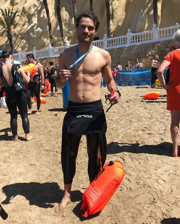 Fueron 14 horas y media. «Siempre que hago un Ironman, durante la prueba pienso, 'no vuelvo en mi puta vida a hacer uno' y al día siguiente deseas hacer otro». Recuerda momentos muy duros en el tramo de ciclismo en una isla muy expuesta al viento o cómo quemaba el suelo cuando empezó la maratón. A final de 2016 llegó otra obsesión: cruzar el Estrecho de Gibraltar. Ya entonces, el plazo de espera era de más de dos años y ahora tiene cita para 2020. La embarcación de apoyo cuesta 2.000 euros y su grupo es de cuatro nadadores. «De pequeño me encantaba ver a David Meca haciendo ese tipo de cosas».