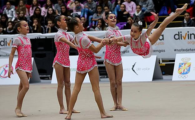Tras Ritmo de León benjamín, que concluyó su concurso con música de Pippi Calzaslargas y con una puntuación de 14.450 en el primer ejercicio y 13.900 en el segundo, acabaron en el podio Huelva (26.550) y las valencianas de Les Marines (25.150). Por lo tanto, dos medallas de oro de las que ya presumen el equipo leonés alevín formado por Sandra, Andrea, Elena, Paula y Adriana y el benjamín, con Tania, Andrea, Marta, Carlota y Aitana.