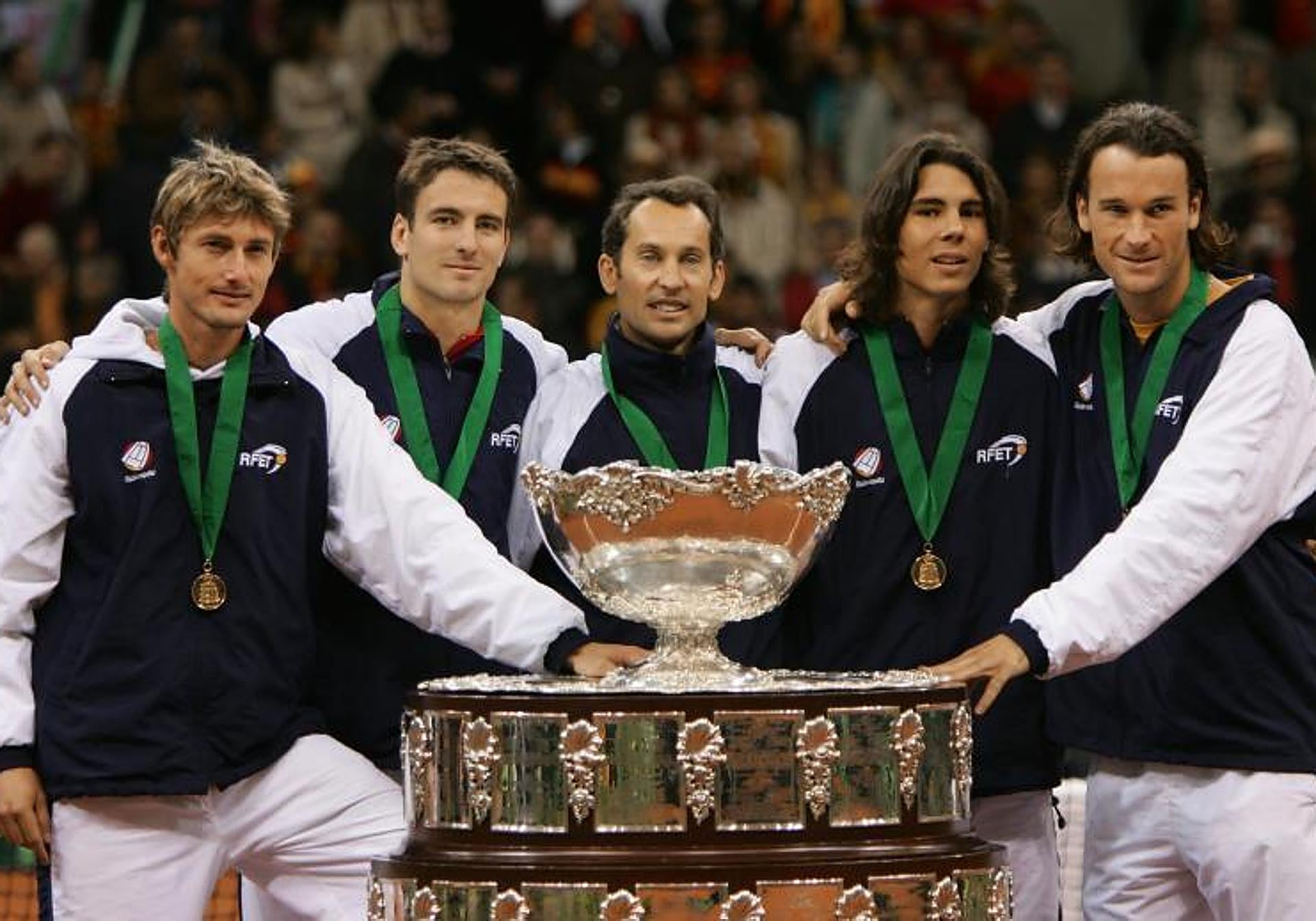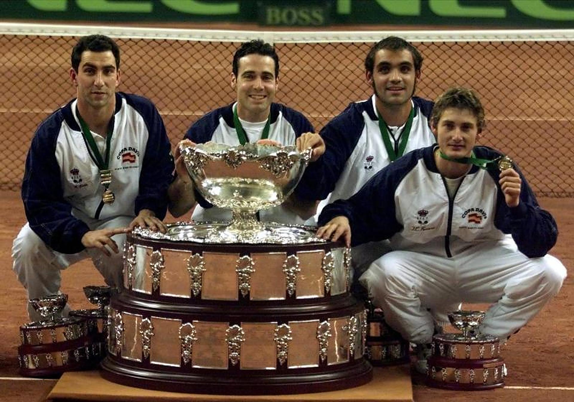 Todo comenzó en el Palau Sant Jordi de Barcelona. Albert Costa, Álex Corretja, Juan Carlos Ferrero y Joan Balcells formaron el combinado que disputó la final ante la Australia de Lleyton Hewitt sobre la arcilla de la Ciudad Condal. Después de dos finales perdidas ante Australia, cuando el tenis todavía se veía en blanco y negro en 1965 y 1967, el cambio de siglo sentó bien al deporte nacional, con un primer éxito en grupo, como revancha ante los australianos.