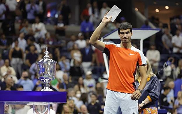 El primero de los muchos grandes que se espera que gane Alcaraz lo conquistó con 19 años y cuatro meses, para coronarse también ya como número uno y convertirse en el tenista más joven de la historia en alcanzar esa posición. Antes de derrotar a Ruud en la final, el murciano tuvo que superar un examen durísimo en cuartos ante el italiano Jannik Sinner. Alcaraz levantó una bola de partido y acabó ganando al transalpino en cinco sets (con dos 'tie-breaks') tras cinco horas y cuarto de batalla. En semifinales también necesitó cinco mangas con dos muertes súbitas para superar a Frances Tiafoe y quedar a un paso de la gloria a la espera del título.