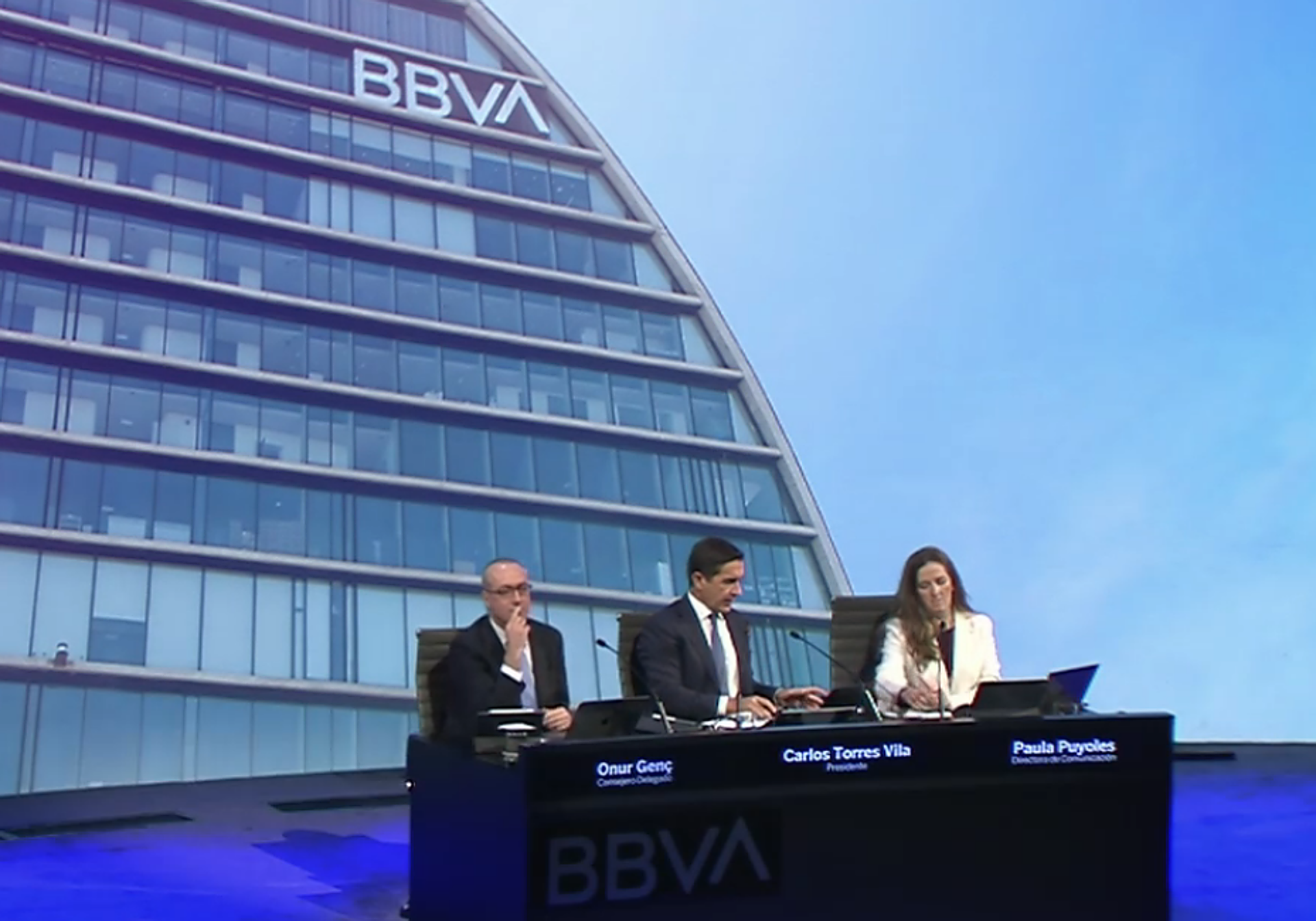El presidente de BBVA, Carlos Torres, en la rueda de prensa de esta mañana. BBVA