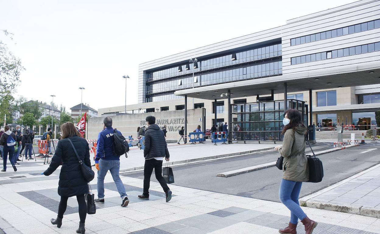 Funcionarios ante una sede administrativa. R. C.