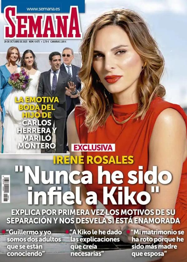 Irene Rosales ha concedido una entrevista en exclusiva para la revista Semana, adelantada en televisión por Jorge Borrajo en 'El tiempo justo'. La sevillana ha querido zanjar los rumores que la señalaban como infiel : «Nunca le he sido infiel a Kiko Rivera», afirma tajante. Según explica, su matrimonio se rompió por un desgaste emocional y una dinámica en la que, como ella misma reconoce, «fui más madre que esposa».