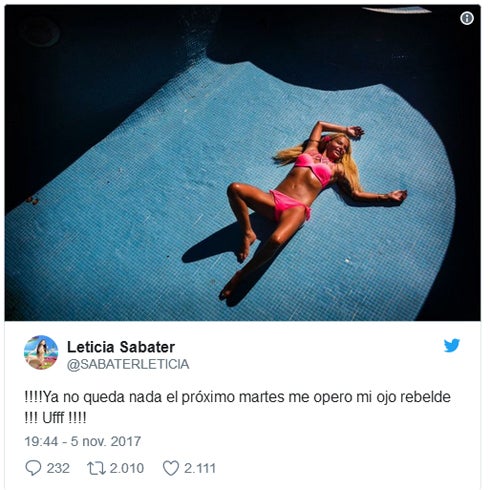 Leticia Sabater ha demostrado una gran habilidad para movilizar a sus seguidores en las redes sociales, y como muestra de ello ha sido una de sus últimas publicaciones. La singular artista ha publicado que este martes pasará por el quirófano para corregir una de las características más notables que la han definido desde hace años y es que se sometará a una operación para acabar con su estrabismo, según ha publicado 'La Vanguardia'.