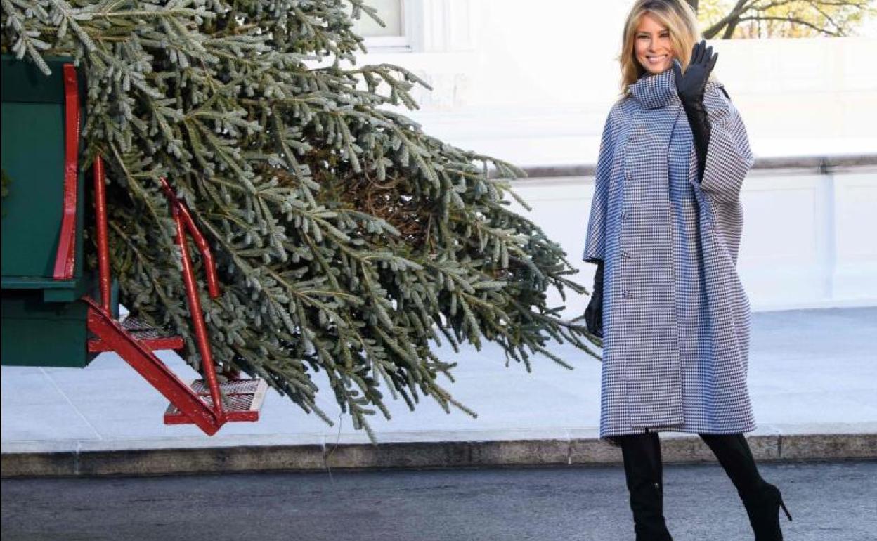 La prima dama es fiel a la tradición de recibir el abeto más alto que decorará su aún hogar estrenando, como en los anteriores años, un maravilloso abrigo