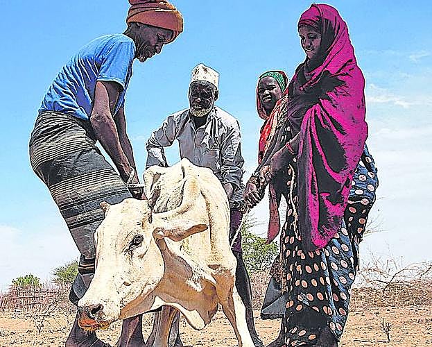Los motivos para la catástrofe abundan y se yuxtaponen. La concatenación de desastres como la irregularidad pluviométrica, inundaciones y plagas de langosta, ha generado inseguridad alimentaria en escenarios carentes de recursos públicos. «La sequía severa afecta al 90% del territorio y han diezmado cultivos y reses, disminuyendo la capacidad de la gente para afrontarla», asegura Abdiaziz A. Adani, responsable de incidencia política de la ONG Oxfam en Somalia, territorio fundamentalmente ganadero. «Algunas familias que poseían 600 animales, conservan 4 o 5. La falta de agua y pastos ha debilitado al ganado y el precio de los animales ha caído».
