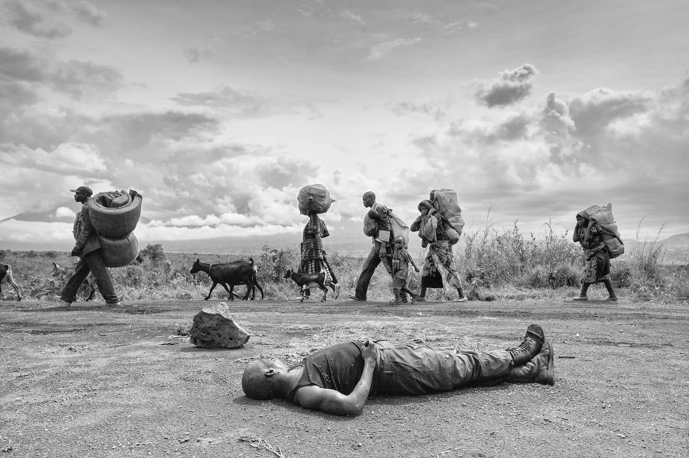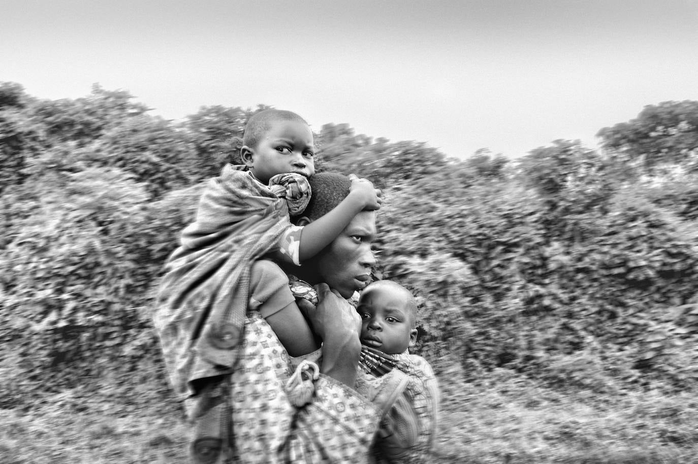 Población civil huyendo de los combates entre el ejército y grupos rebeldes en la República del Congo. Muchas familias se han visto obligadas a buscar fortuna lejos de su lugar de nacimiento.