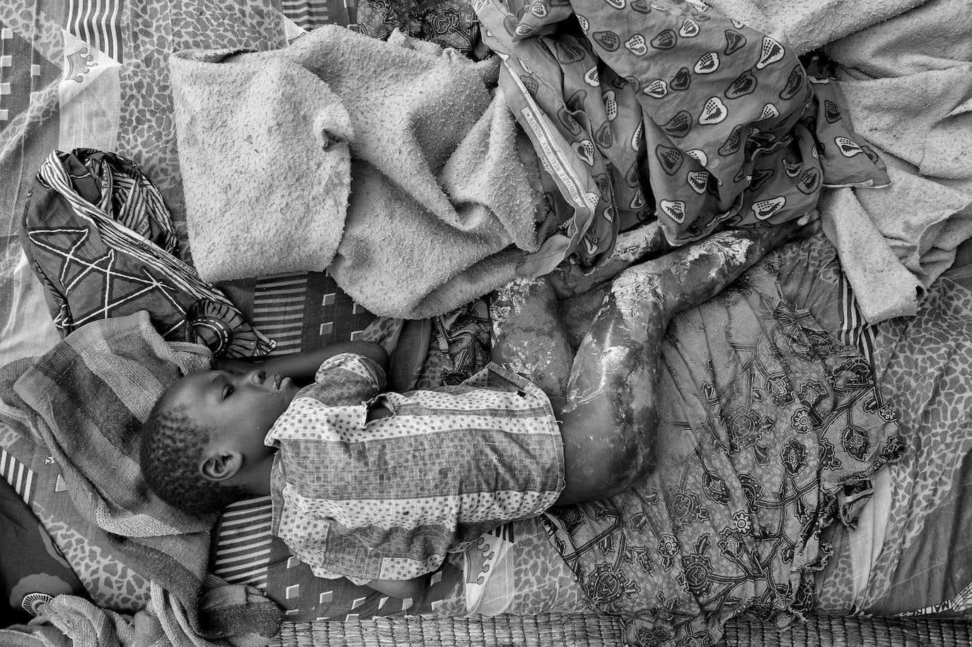 Un niño herido espera ayuda en el campo de refugiados de Kibati. Los combates han dejado miles de muertos y heridos. Los más pequeños, con mutilaciones, son los más afectados de este enfrentamiento armado.