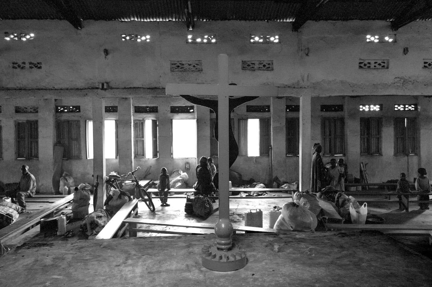 Población civil se refugia de los combates entre el ejército y grupos rebeldes en el interior de una iglesia próxima al campo de refugiados de Kibati.