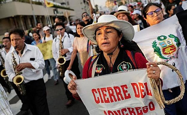 Desde el inicio del año estaba prevista la llegada masiva de manifestantes desde varias provincias de Perú a Lima para exigir la renuncia de la ... presidenta, Dina Boluarte, y la convocatoria inmediata de elecciones. El grueso de la marcha ha alcanzado este jueves la capital, incrementada por la incorporación de más personas de las previstas, después de que el miércoles la muerte de una mujer de 35 años y un hombre de 30 en medio de enfrentamientos con la Policía recrudeciera la tensión en la autodenominada 'La toma de Lima'. Ello ha obligado también a un mayor despliegue policial para evitar disturbios. En Lima se congregaron hasta 11.800 agentes.