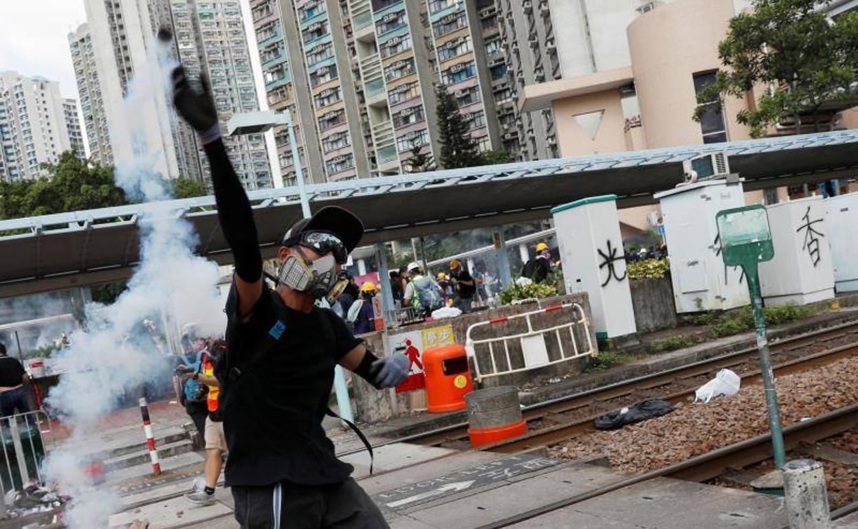Los manifestantes contra la ley de extradición a China colapsan los transportes públicos y ocupan ocho puntos de la ciudad, de donde los antidisturbios intentan dispersarlos con gases lacrimógenos