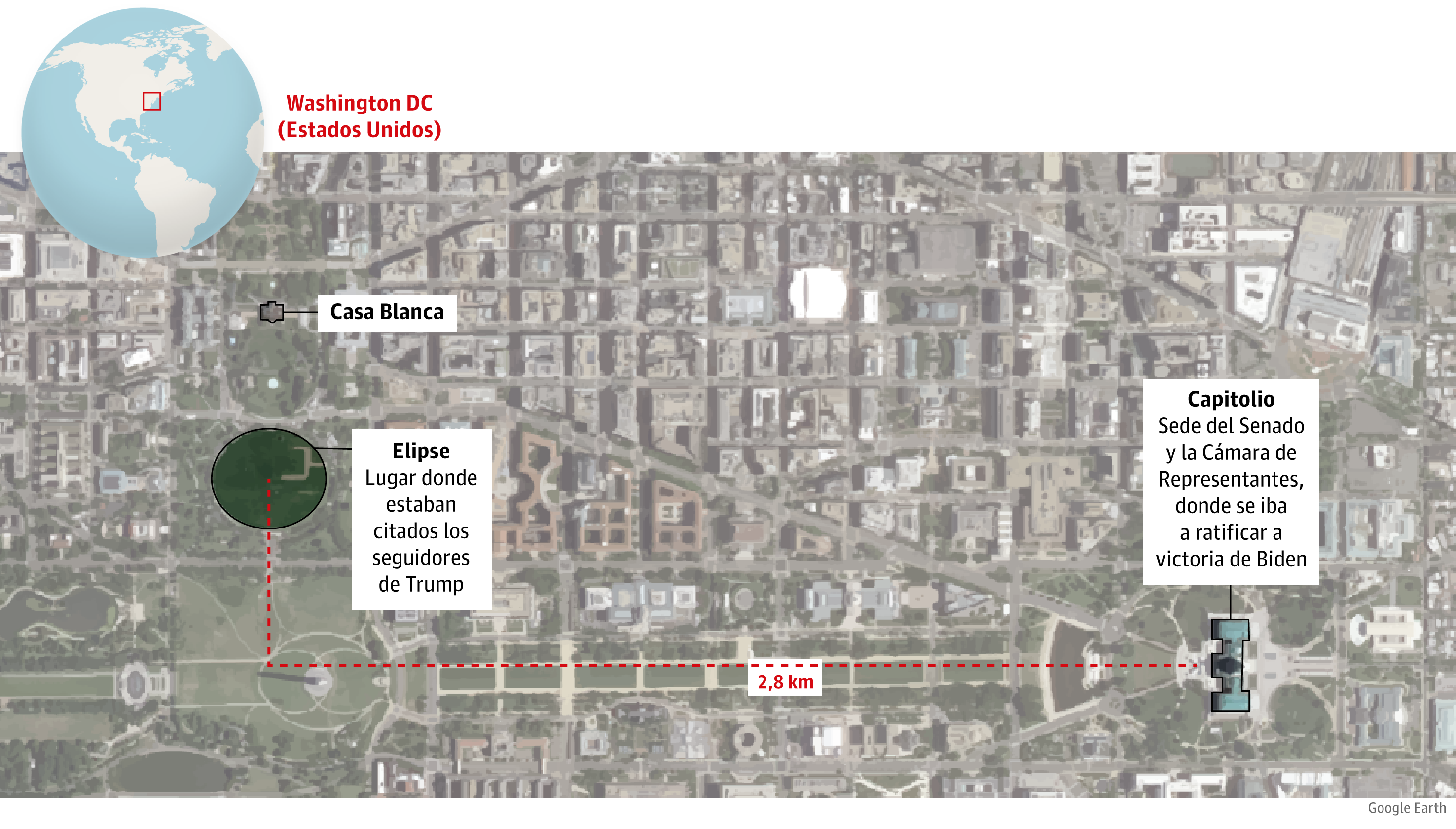 El aliento de Trump aupó el miércoles a una turba enfurecida que, enarbolando la teoría del fraude electoral, ocupó el Capitolio cuando iba a ratificarse la victoria del demócrata Joe Biden en las últimas elecciones. Mientras, el mundo miraba atónito un acontecimiento rocambolesco que se saldó con cinco muertos, decenas de detenidos y una enérgica petición de destitución del todavía presidente de los Estados Unidos, también por parte de miembros de su propio partido.