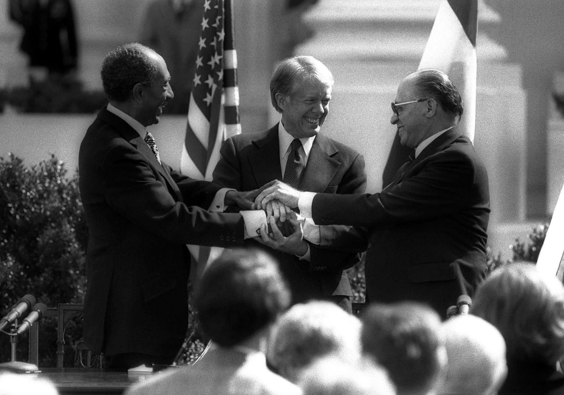 En Oriente Próximo, Carter empeñó su capital político y tenacidad en la normalización de las relaciones entre Egipto e Israel, que, tras la fallida Conferencia de Ginebra de 1973, culminaron con la firma de los Acuerdos de Camp David entre el presidente Anwar Sadat y el primer ministro israelí Menachem Begin en 1978.