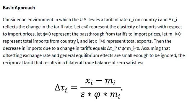 El cálculo. Los datos que ha utilizado Trump no tienen ninguna base en estadísticas conocidas. La oficina de la Casa Blanca ha difundido horas más tarde un comunicado en el que explica el método aplicado. Frente a la sencillez del cartel, la fórmula empleada -que pueden ver aquí abajo- no es apta para neófitos.