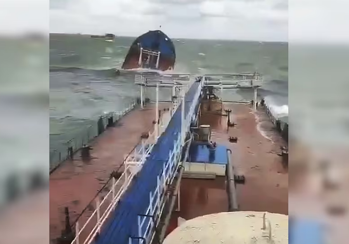 La Agencia Federal de Transporte Marítimo de Moscú confirmó por la tarde que se había producido un vertido de combustible, de alcance todavía por determinar. En la imágenes del siniestro se ve una enorme mancha sobre la superficie y zarandeada por enormes olas. Las agencias rusas hablan también de «error humano» a la hora de afrontar una tormenta así por parte de las tripulaciones.