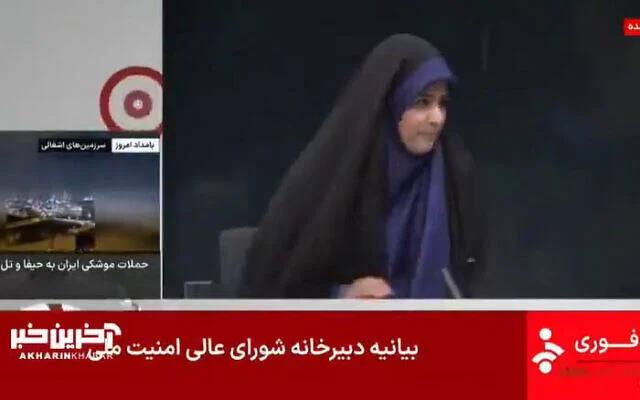 Una locutora que estaba en pleno programa se vio obligada a salir a la carrera mientras el humo y los escombros llenaban el estudio de la cadena IRIB