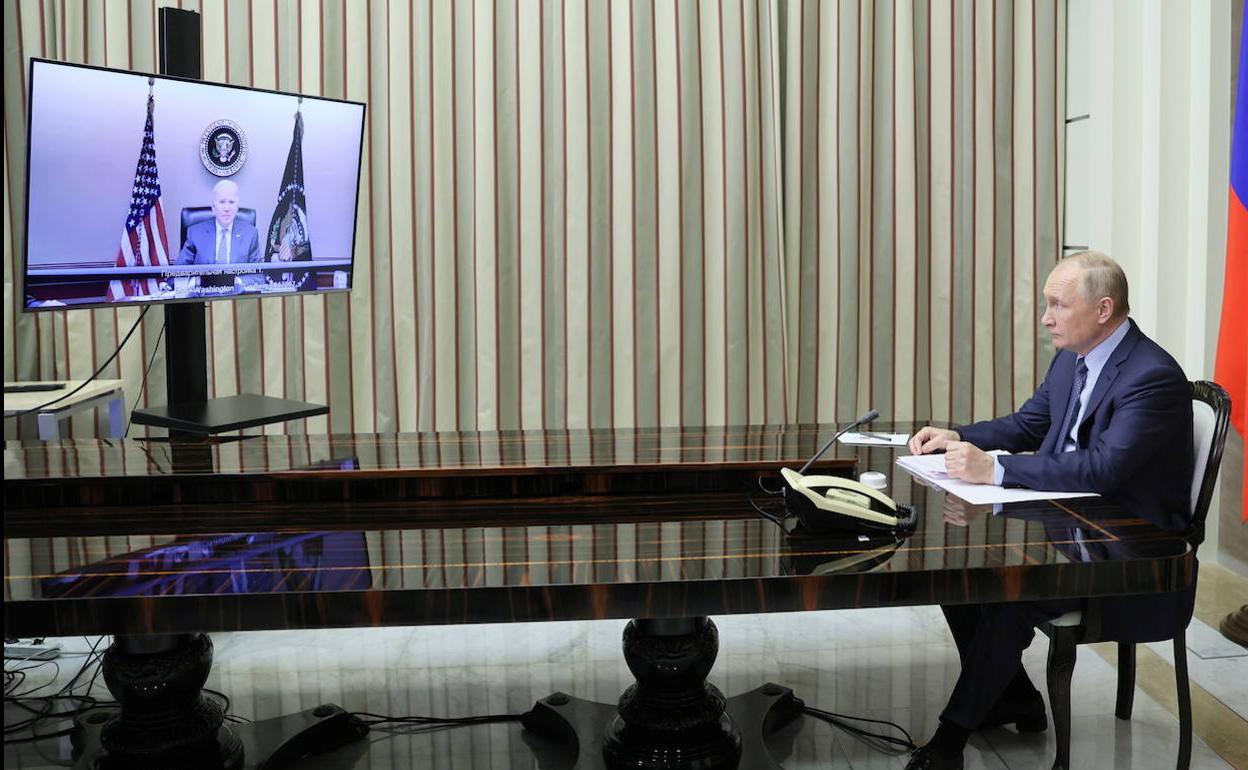Joe Bide y Vladímir Putin, en una reunión telemática a principios de diciembre. EFE