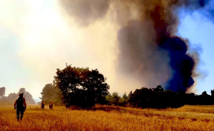 Numerosos efectivos, con apoyo aéreo, intervienen desde primera hora de la tarde de este lunes en un virulento incendio declarado en la localidad de Vega de Magaz.