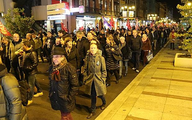 La protesta ha partido este jueves desde la Plaza de Guzmán y ha transcurrido por una de las arterias principales de la capital leonesa como es Ordoño II, con paso por la Plaza de Santo Domingo y la Gran Vía de San Marcos, para finalizar su trayecto en la Plaza de San Marcos donde el Premio Cervantes Antonio Gamoneda ha leído un manifiesto.
