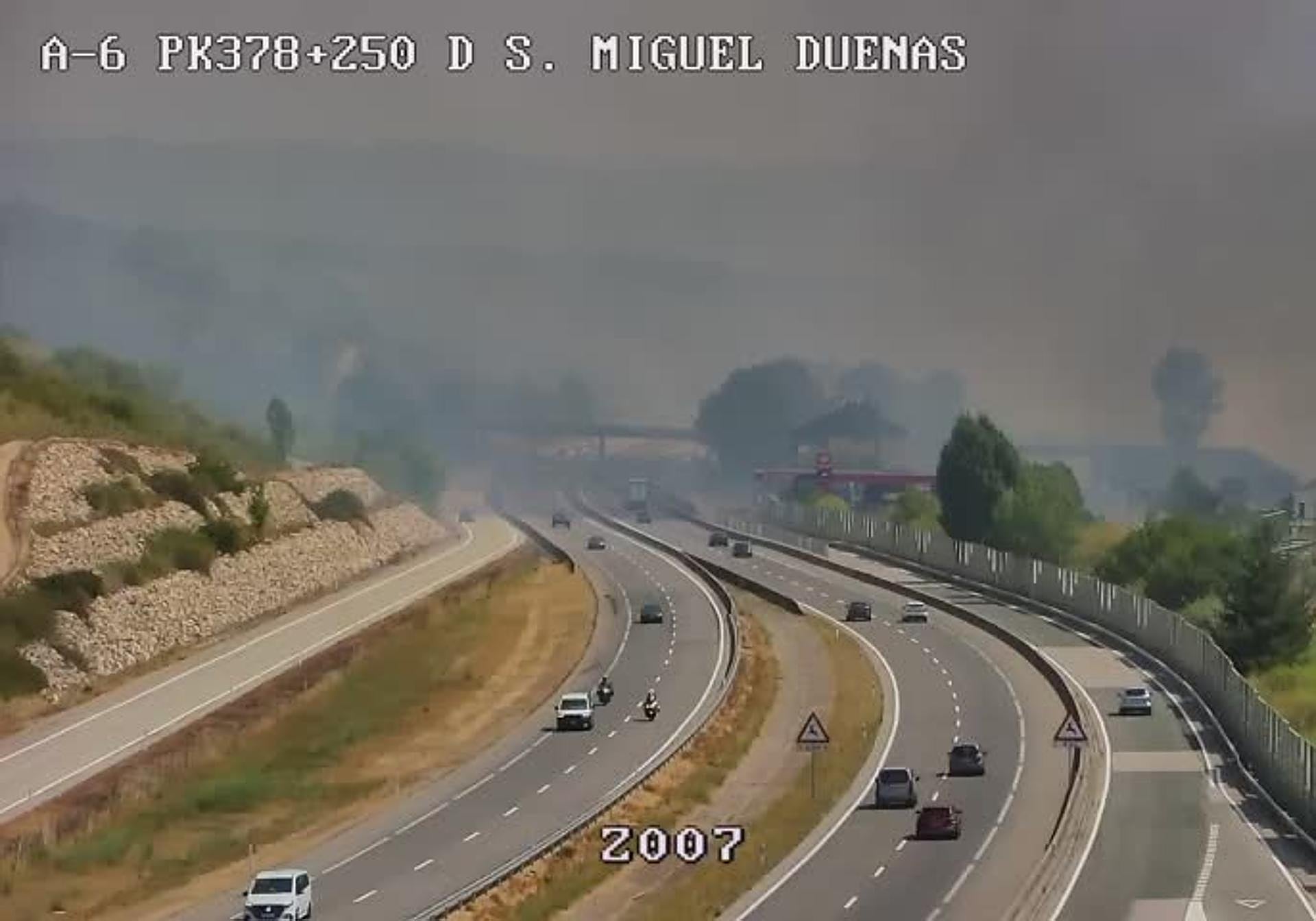 El último en declararse, el que de momento se sitúa en Villaverde de los Cestos, en el término municipal de Castropodame, ha obligado a cortar la Nacional VI entre los kilómetros 370 y 380 debido al humo. Una falta de visibilidad que también afecta a la A-6, pero de momento sin restricciones.