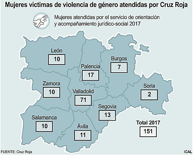 María es una de las 102 mujeres de Castilla y León que hasta septiembre de este año están siendo atendidas por el Servicio de Orientación y Acompañamiento Jurídico-Social de Cruz Roja y que en 2017 sumaron 151 repartidas por la nueve provincias. En su caso, decidió utilizar esta prestación aconsejada por Adavas, una ONG que trabaja con víctimas de la violencia de género y ofrece apoyo psicológico y un letrado si la víctima lo precisa.