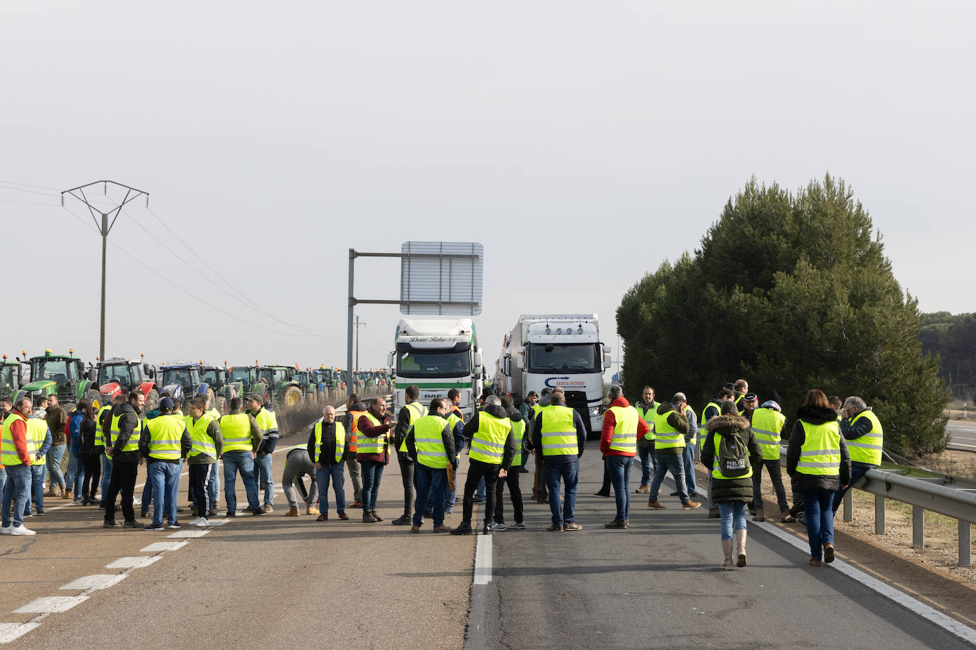Noventa agricultores cortan durante dos horas la A-6 y provocan retenciones