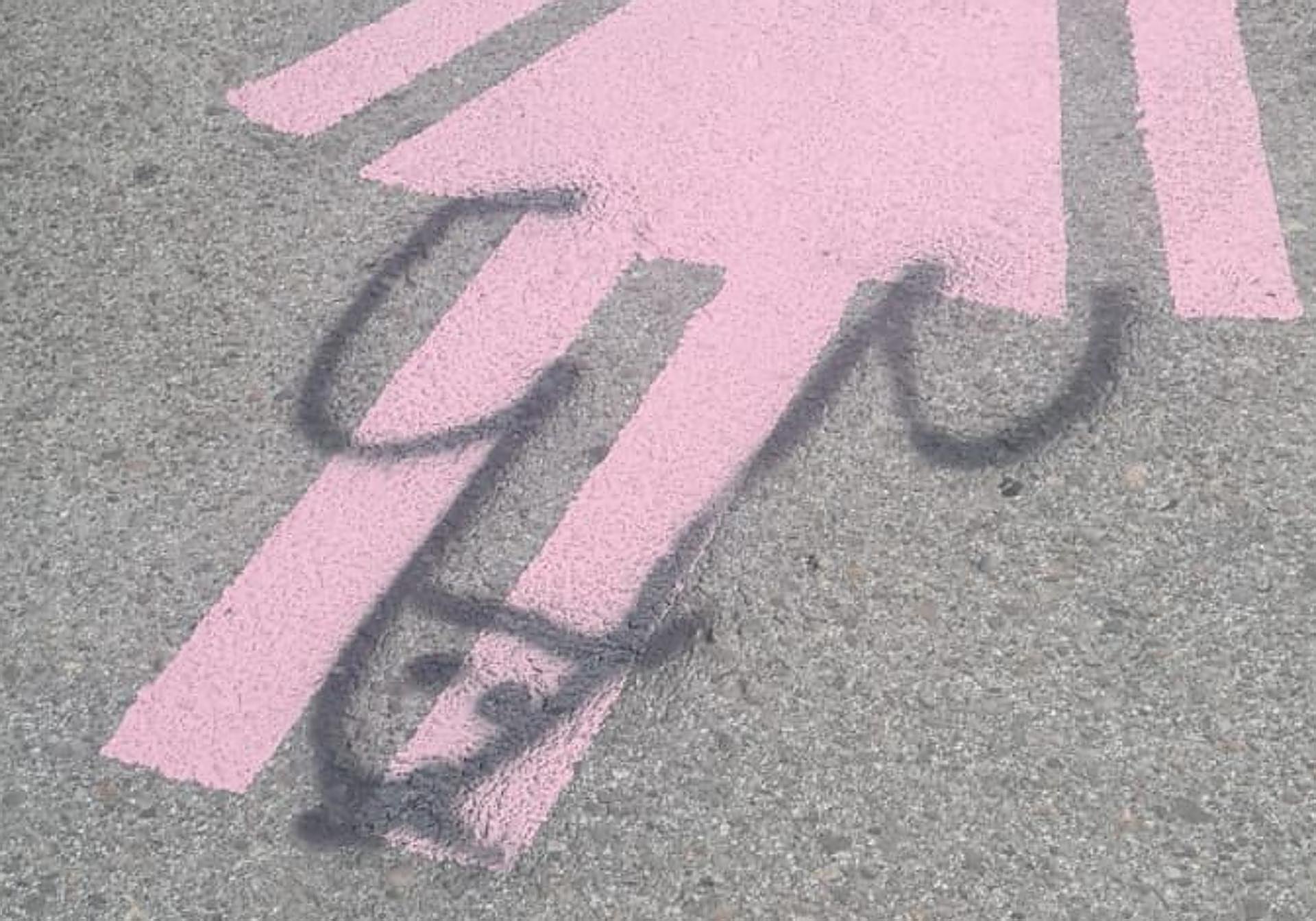 La iniciativa municipal de movilidad con perspectiva de género apareció alterada con dibujos inapropiados en el pavimento