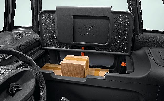 Asimismo, dispone de un espacio en formato A4 para dejar documentos como un albarán de entrega, un listado de pedidos, o una tableta digital. Y en la parte trasera tiene un realce para mantener los documentos colocados en este soporte. Modulable, puede desplazarse hacia la zona del conductor para acceder más fácilmente a la parte de almacenamiento En su parte trasera, un espacio cerrado independiente puede albergar objetos que necesiten estar en un espacio seguro como un smartphone o unas gafas de sol.