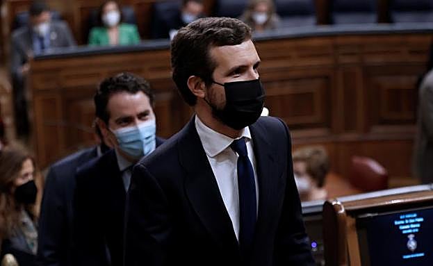 Pablo Casado el pasado miércoles durante el control al Gobierno en el Congreso. Efe / Atlas
