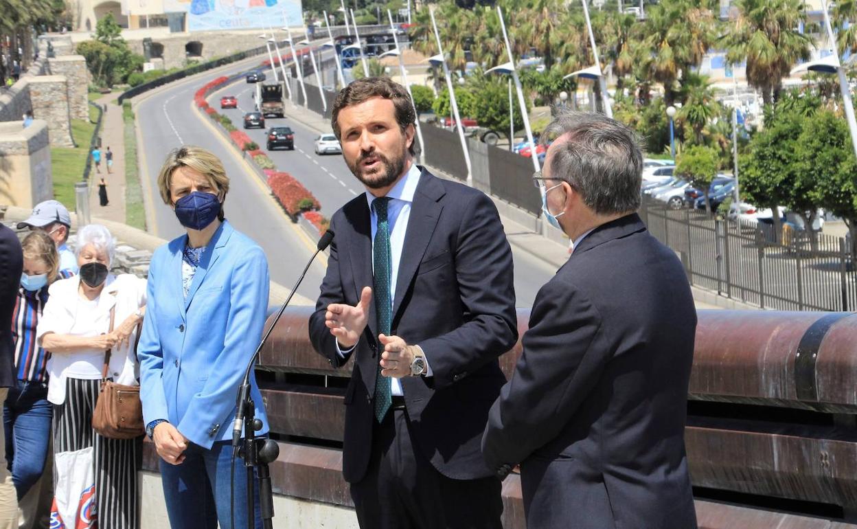 El presidente nacional del PP, Pablo Casado, este jueves en Ceuta. EFE / Atlas