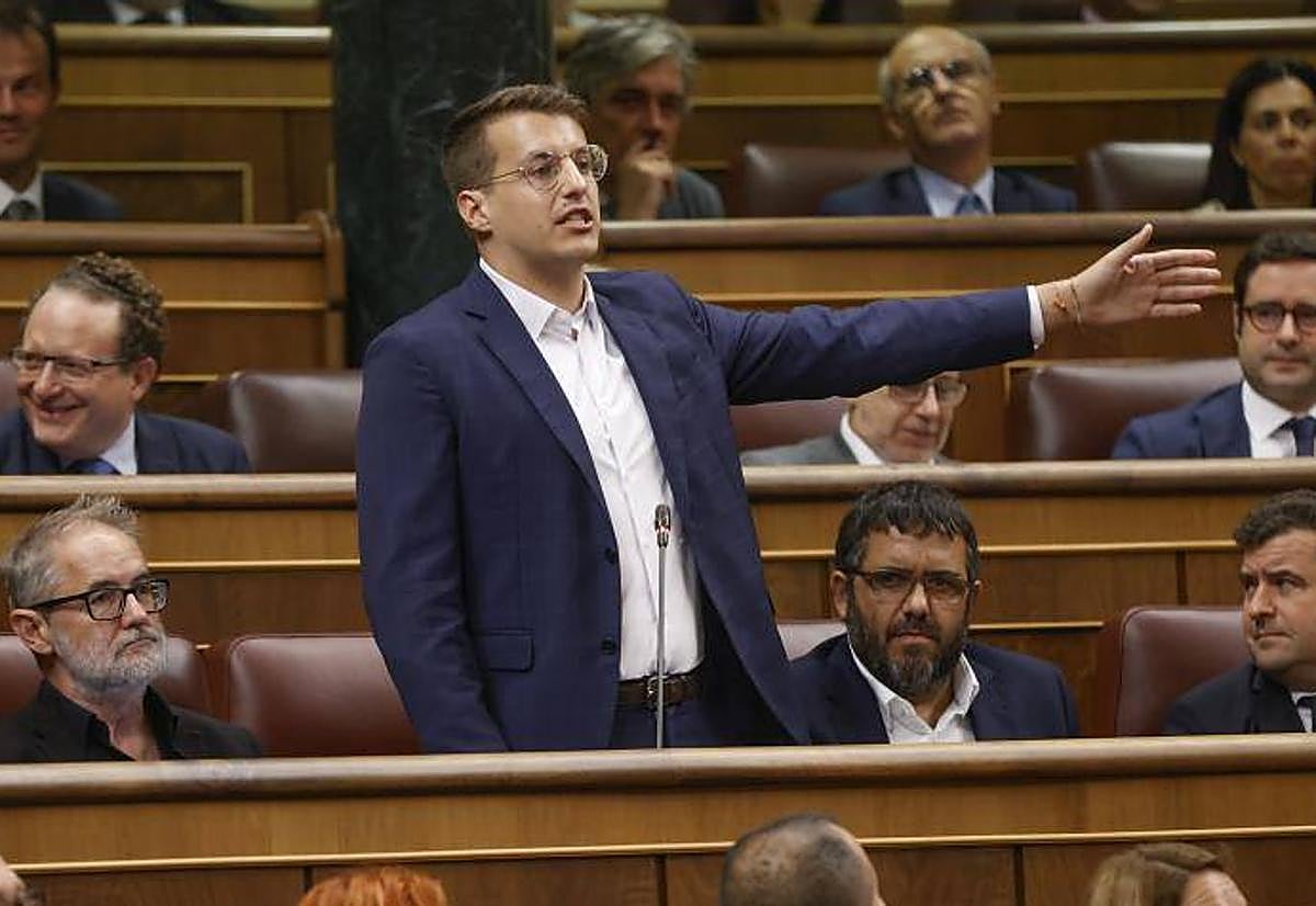 El diputado de Sumar, Jorge Pueyo, interviene en aragonés durante el pleno. Foto: Efe | Vídeo: Ep