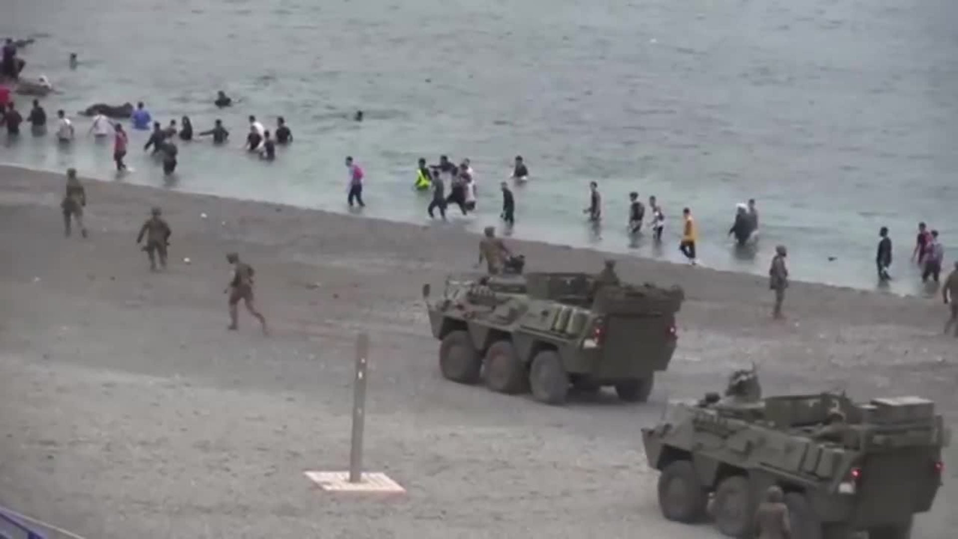Policías y militares patrullan en Ceuta para agrupar a los inmigrantes huidos después de que decenas de ciudadanos marroquíes hayan sorteado la vigilancia fronteriza