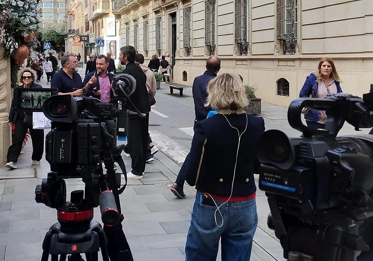 Medios de comunicación y expectación en el exterior de la Diputación Provincial de Almería. A. A.