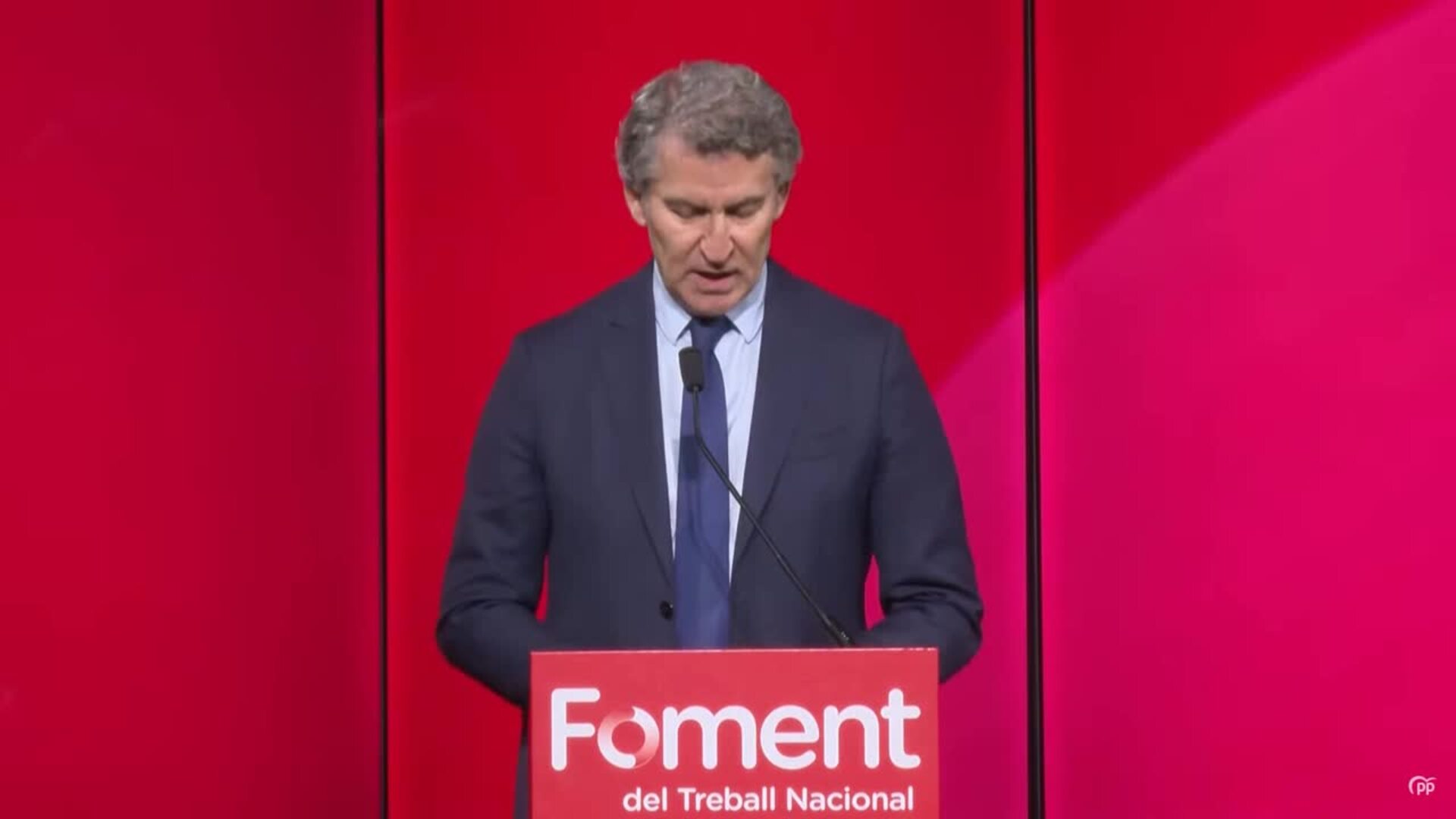 El presidente del PP, Alberto Núñez Feijóo, ha pedido este viernes ante Foment del Treball los...