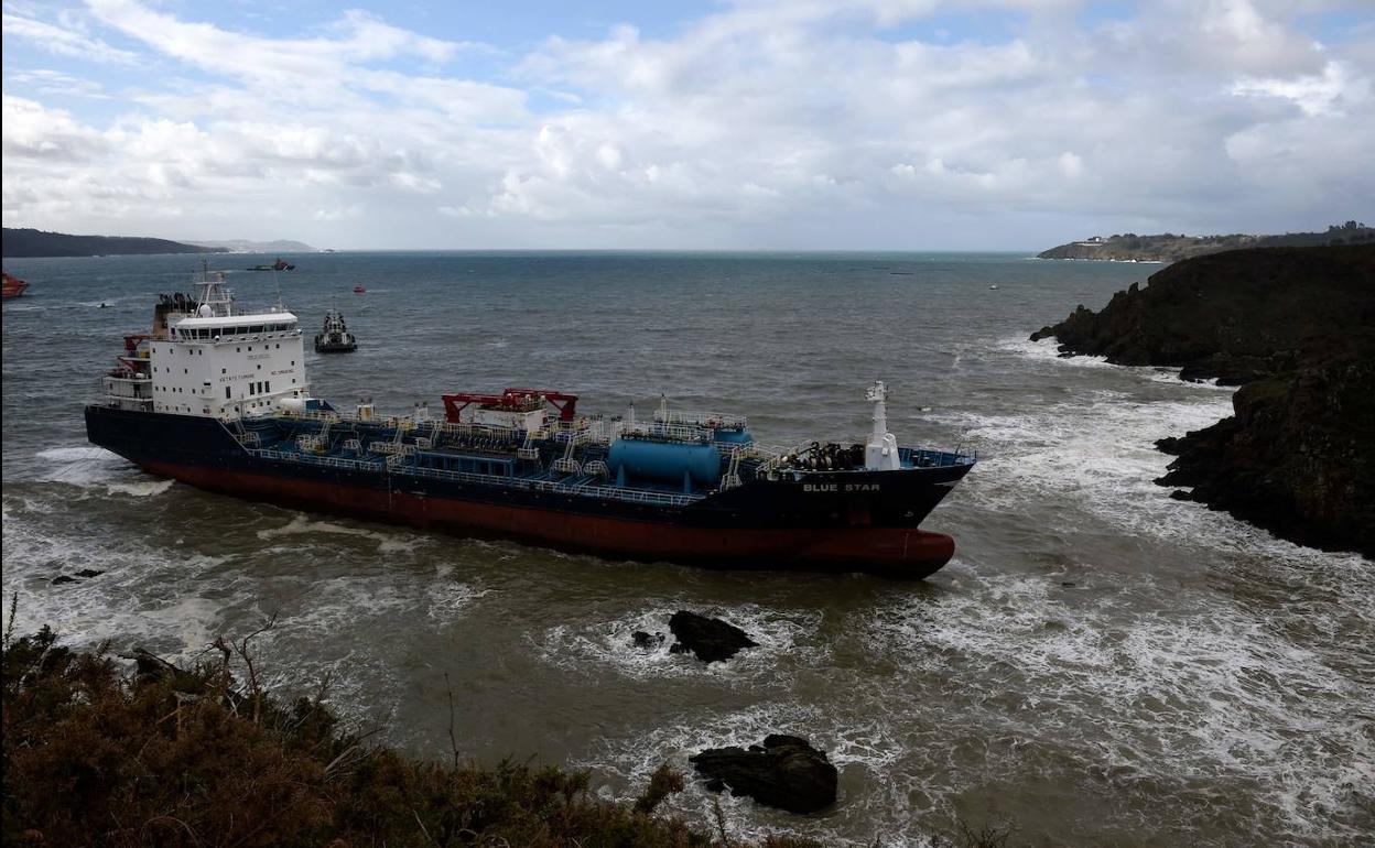 El buque 'Blue Star' encallado en la costa del municipio de Ares (A Coruña). AFP