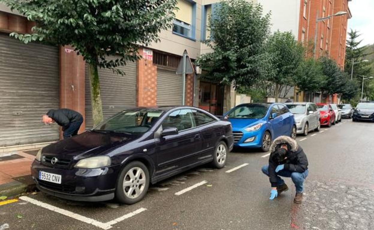 Agentes de la Policía Nacional buscan el arma empleada en el crimen cometido en Mieres (Asturias). A. Fuente