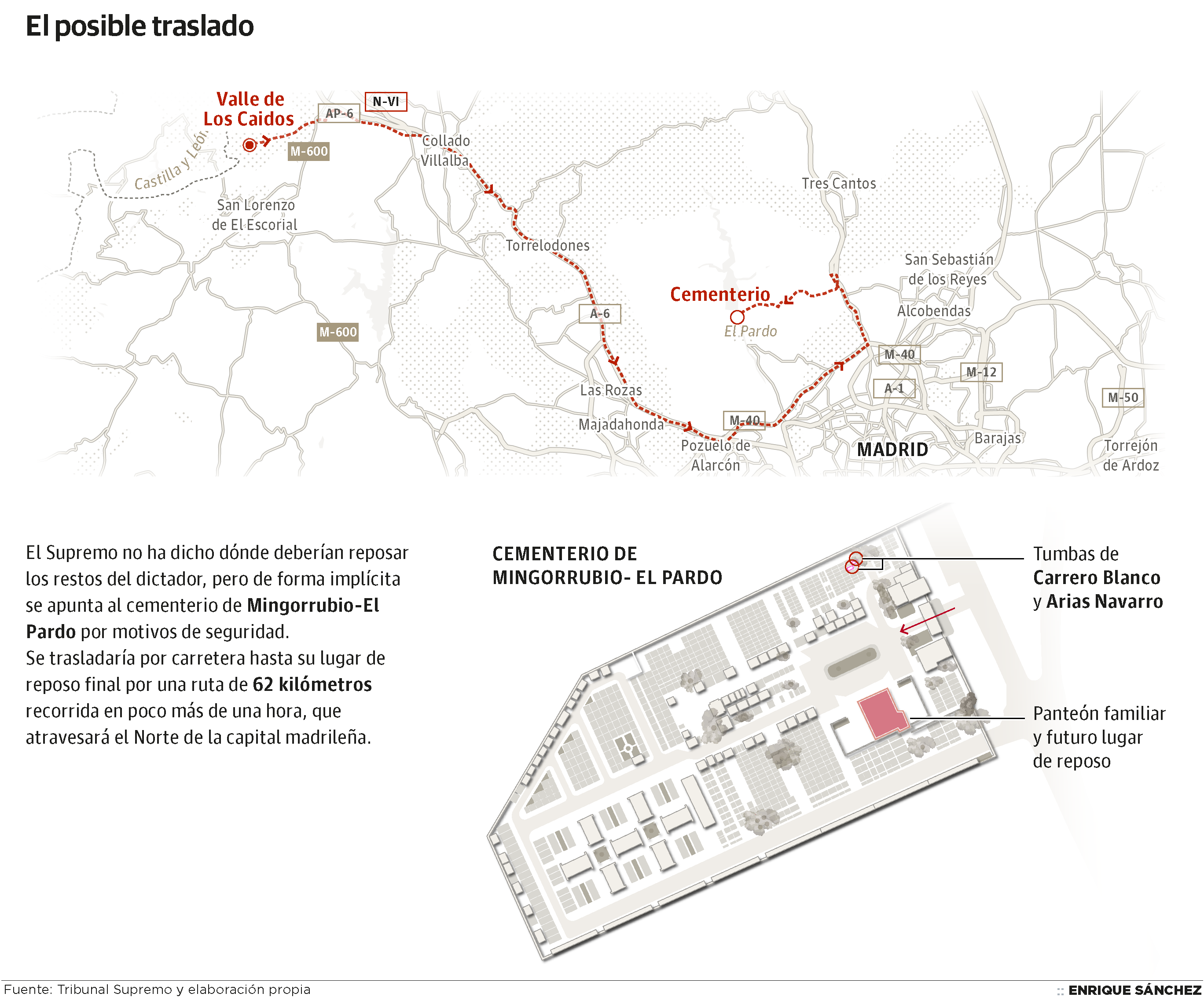 El Tribunal Supremo avala al Gobierno y su decisión de trasladar los restos de Francisco Franco desde el Valle de los Caídos al cementerio de Mingorrubio, en El Pardo. La familia ya había anunciado que, en caso de fallo desfavorable, acudiría al Constitucional y, como último recurso, a Estrasburgo.