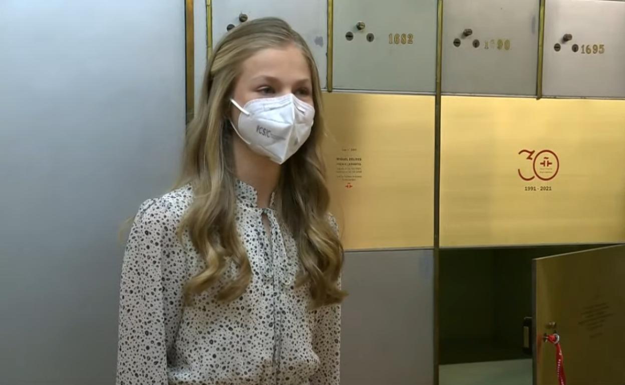 Acompañada por la vicepresidenta primera del Gobierno, Carmen Calvo, y por el director de la institución, Luis García Montero, la primogénita de los Reyes recorrió las instalaciones cervantinas y depositó dos libros en la llamada Caja de las Letras, una antigua cámara acorazada donde se guardan las grandes obras escritas en español. Los elegidos fueron la Carta Magna que leyó el 31 de octubre de 2018 y un ejemplar de 'El Quijote' con el que Leonor participó el pasado abril, en pleno confinamiento, en el Día del Libro. Y lo hizo en la caja 2021, situada entre la de Miguel Delibes y la de Severo Ochoa y cuya llave se llevó consigo de regreso al Palacio de la Zarzuela.