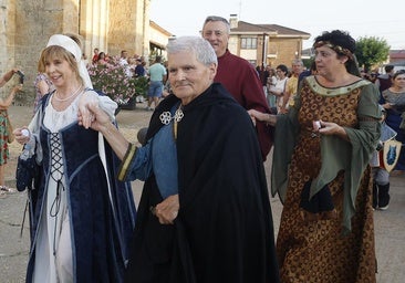 Desde allí se desplazaron hasta el centro de la localidad palentina, tutelado por la iglesia San Miguel, donde tanto Carlos como Leonor, entronados junto a los Marqueses, fueron agasajados con lisonjas, bailes, trovas, música y aplausos de los asistentes.