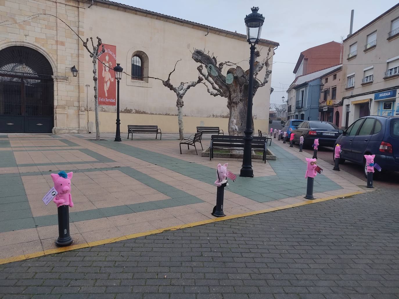Cerdos de ganchillo en Herrera de Pisuerga como crítica a las macrogranjas