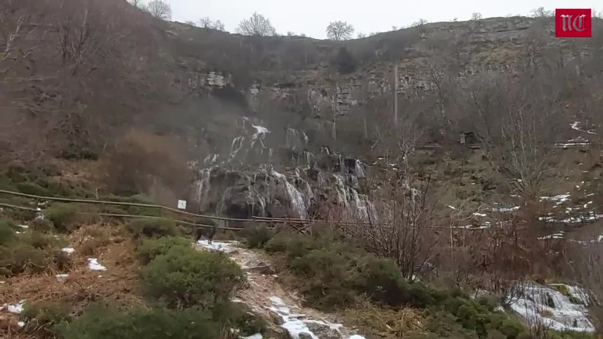 El deshielo de la cascada de Covalagua, un atractivo turístico
