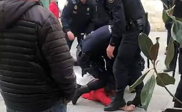 El incidente tuvo lugar en la calle Martínez de Azcoitia, a pocos metros de la plaza de San Francisco. El hombre iba con un grupo con la pancarta 'En La Moraleja se tortura. Celda 61' y al pedirle la Policía que se retirara, este se resistió y forcejeó con los agentes, que le redujeron en una actuación «desproporcionada», según IU.
