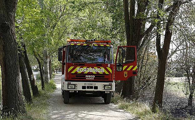 - Los Bomberos actúan en Palencia por una nueva quema de pelusas en la orilla del Carrión