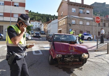 Herida una mujer en una aparatosa colisión entre dos turismos en Aguilar