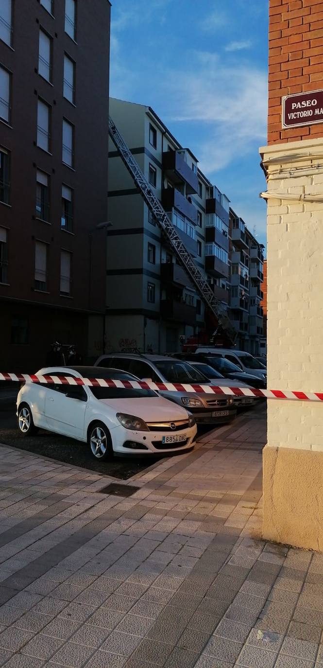 Fue determinante la labor de esa psicóloga del 112, a la que la escala de un camión del Parque de Bomberos de Palencia elevó (acompañada en la cesta por efectivos del servicio de extinción de incendios) hasta la quinta altura del edificio, a poca distancia del hombre que mostraba una conducta autolítica y que, según comentaban algunas vecinas, portaba un cuchillo de unos 20 centímetros con el que al menos en dos ocasiones amenazó con clavarse en el abdomen.