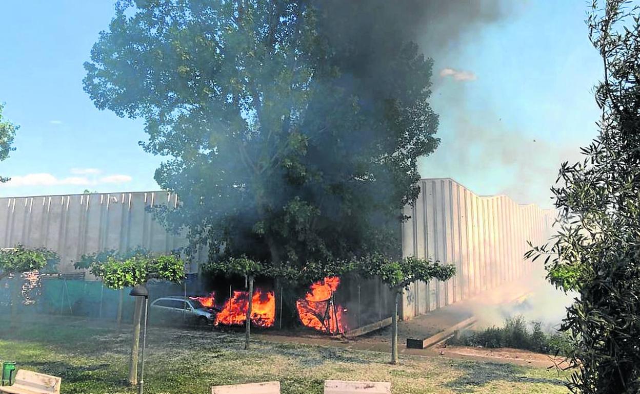 Un coche, la caja de un camión y unos neumáticos ardieron, pero las paredes de hormigón de la nave evitaron que el fuego se propagase más.