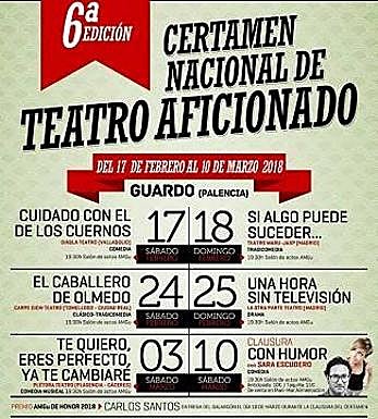 El Certamen Nacional de Teatro Aficionado, en la localidad de Guardo, se celebrará este sábado 3 con la actuación 'Te quiero, eres perfecto, ya te cambiaré', una comedia musical que tendrá lugar a las 19:30 horas en el Salón de Actos AMGu. También 'Con humor'. La clausura tendrá lugar el próximo 10 de marzo.