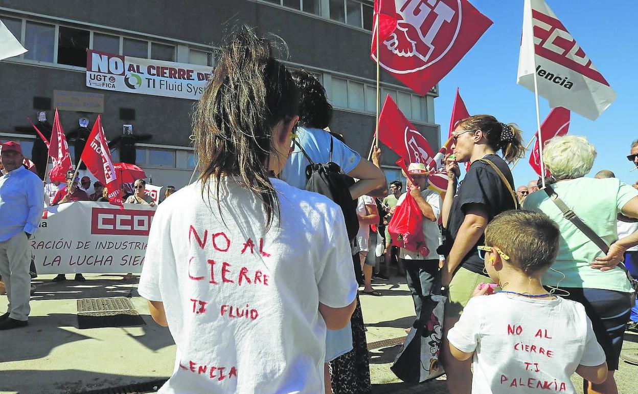 Niños con camisetas escritas a mano con el rótulo 'No al cierre', que correteaban a la vez que soplaban sus coloridos silbatos en señal de protesta. Bajo una pancarta gigante en la fachada, tres peleles en la pared que representaban a tres directivos y el cartel 'Enrique, Patricia y Bercedo. Los ladrones del empleo'. Irene Tejedor, trabajadora hace doce años y embarazada de ocho meses, formaba parte de la concentración de protesta por la decisión unilateral de TI. «Del disgusto se me va a salir la niña», reconocía, sin dejar de entonar los cánticos que reivindicaban que el trabajo se quedase en Palencia. «Nosotros queremos trabajar aquí, eso es lo que pedimos», agregaba.
