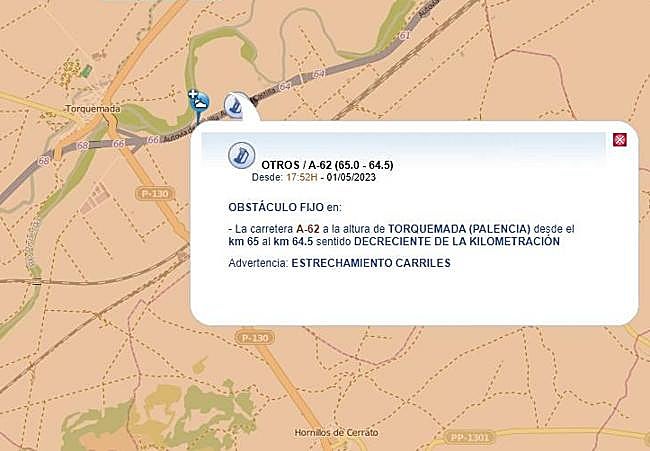 Cuatro horas después, Tráfico seguía informando de problemas de circulación, con estrechamiento de carriles en esta zona de la autovía, debido a la presencia de un obstáculo fijo en la carretera.