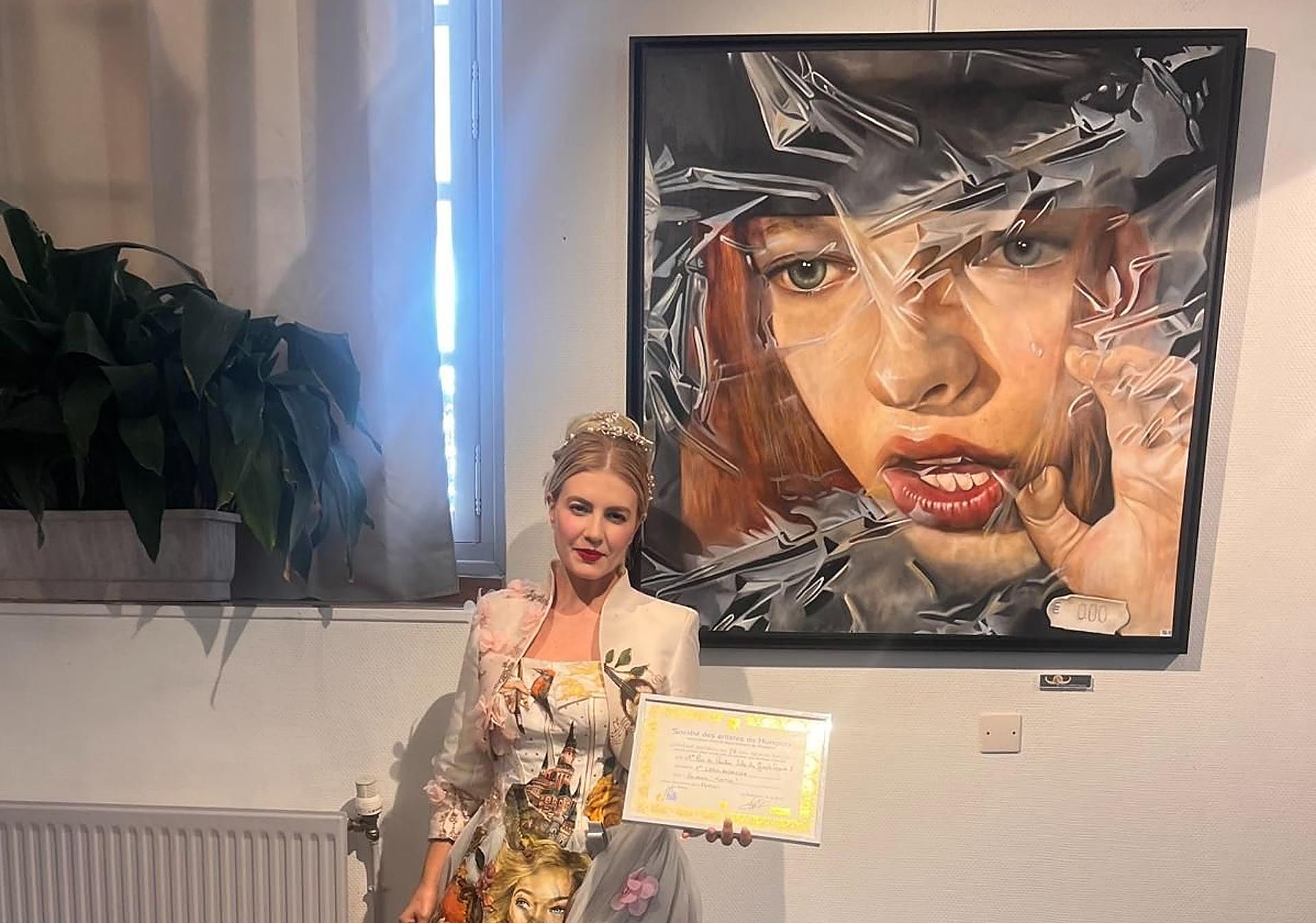 Además, su viaje a la capital de Francia no se limitó a recoger el galardón a su trayectoria artística y a sus múltiples logros entre pinceles y lienzos, sino que también se hizo con el primer premio en Saint Germain de Bois en la Ille de France, al sureste de París, por su obra 'Plástico', óleo que muestra el rostro de una mujer que lucha por su libertad mientras derrama una lágrima, algo que siempre llama la atención del público. Este cuadro se ha impuesto ante más de 400 que optaban al mismo galardón. «Estoy muy contenta porque la obra 'Plástico' está ganando premios y reconocimientos por todo el mundo», señalaba con orgullo su creadora.